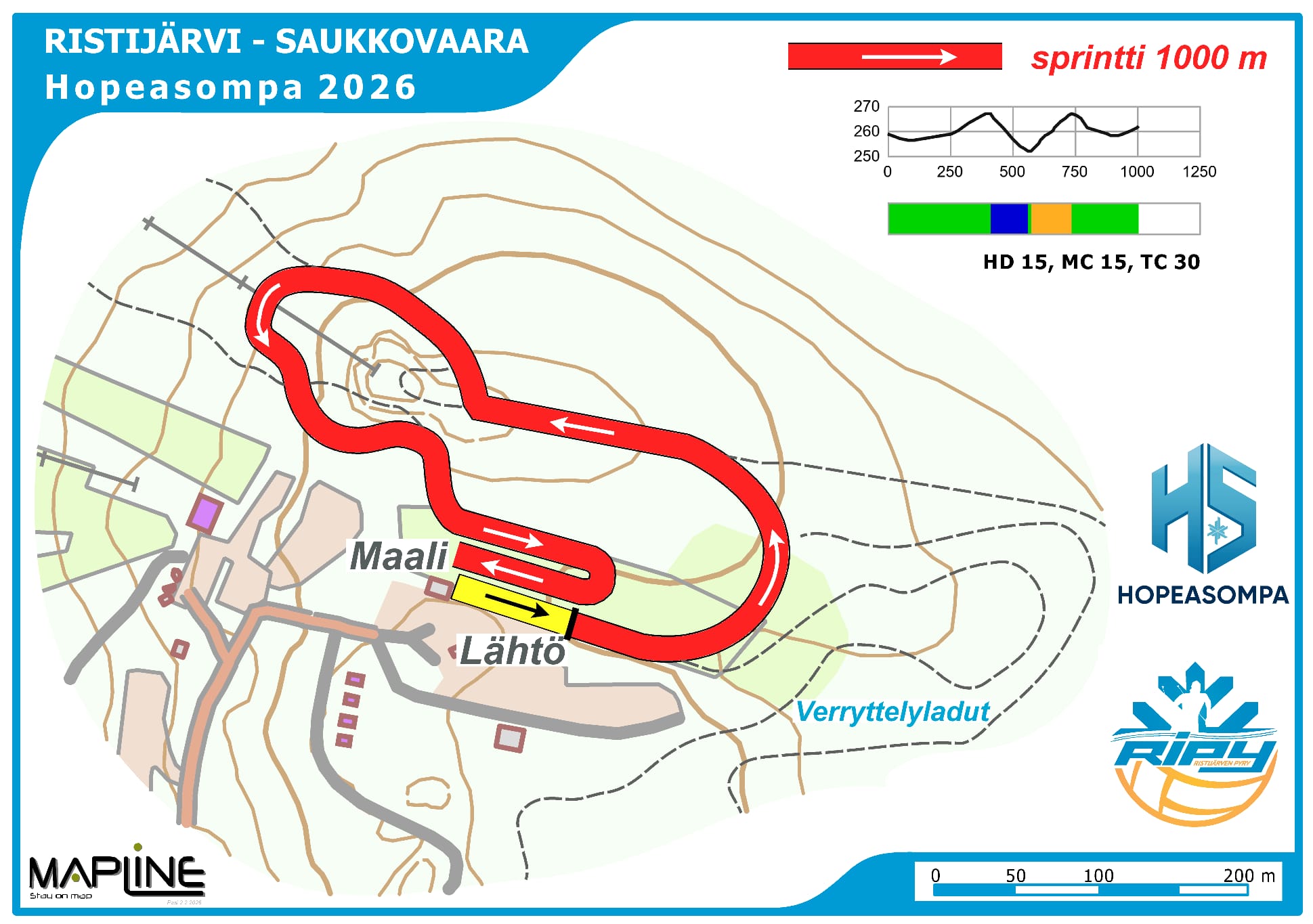 Sprintissä sarjat N/16 hiihtävät 1,0 km reittiä. N/M14 hiihtävät 0.7 km reittiä